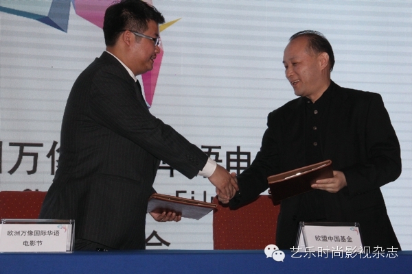 会上,万像国际华语电影节的创始人、主席贾振丹先生代表欧洲万像国际华语电影节组委会与欧盟中国基金、综艺报、北京青年影展三大机构签署了三项战略中欧影视合作平台的合作协议。